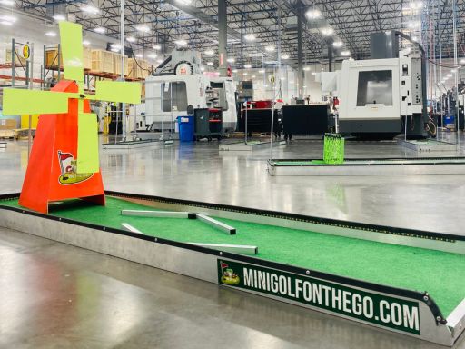 Our top-of-the line portable mini golf courses feature stunning self-contained LED lighting for daytime or nighttime use, and challenging obstacles like windmills, ramps, buildings, loops, and more!